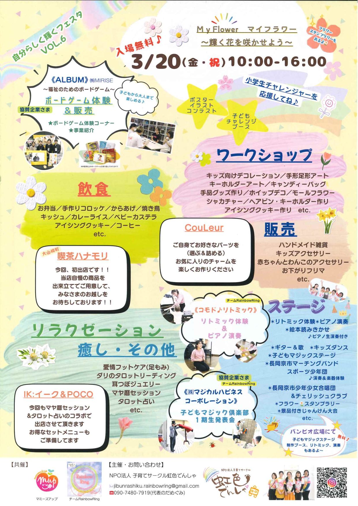 【イベント】3/20(金・祝) 自分らしく輝くフェスタ VOL.6 主催:NPO法人子育てサークル虹色でんしゃ