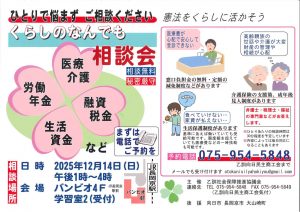 【相談会】12/14 「くらしのなんでも相談会」乙訓社会保障推進協議会