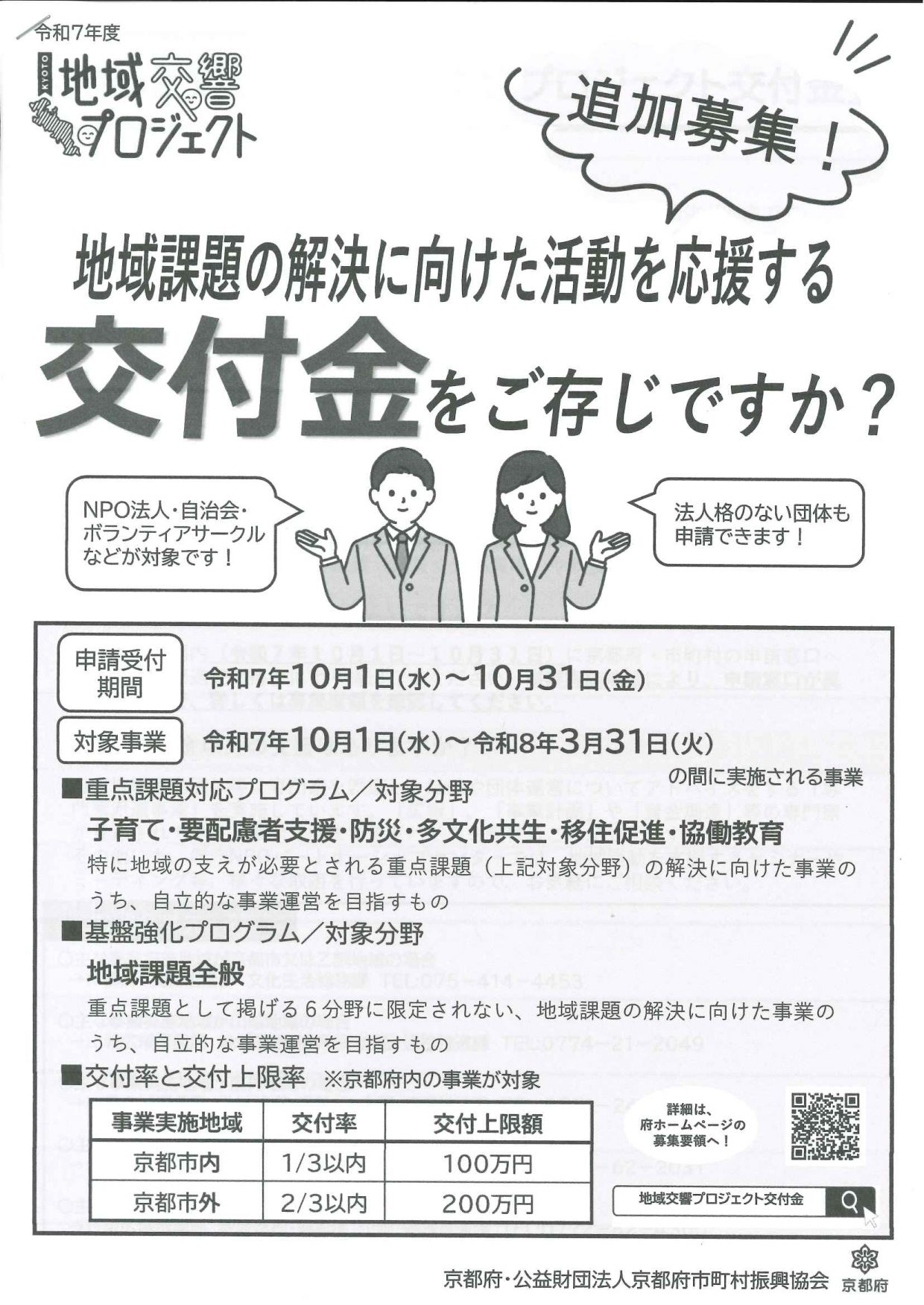 【交付金】~10/31「令和7年度地域交響プロジェクト」追加募集 京都府