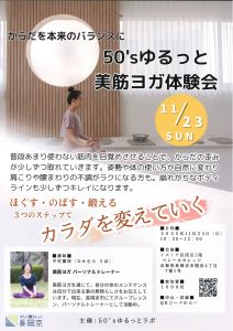 【体験会】11/23(日) 美筋ヨガ 主催:50’s ゆるっとラボ