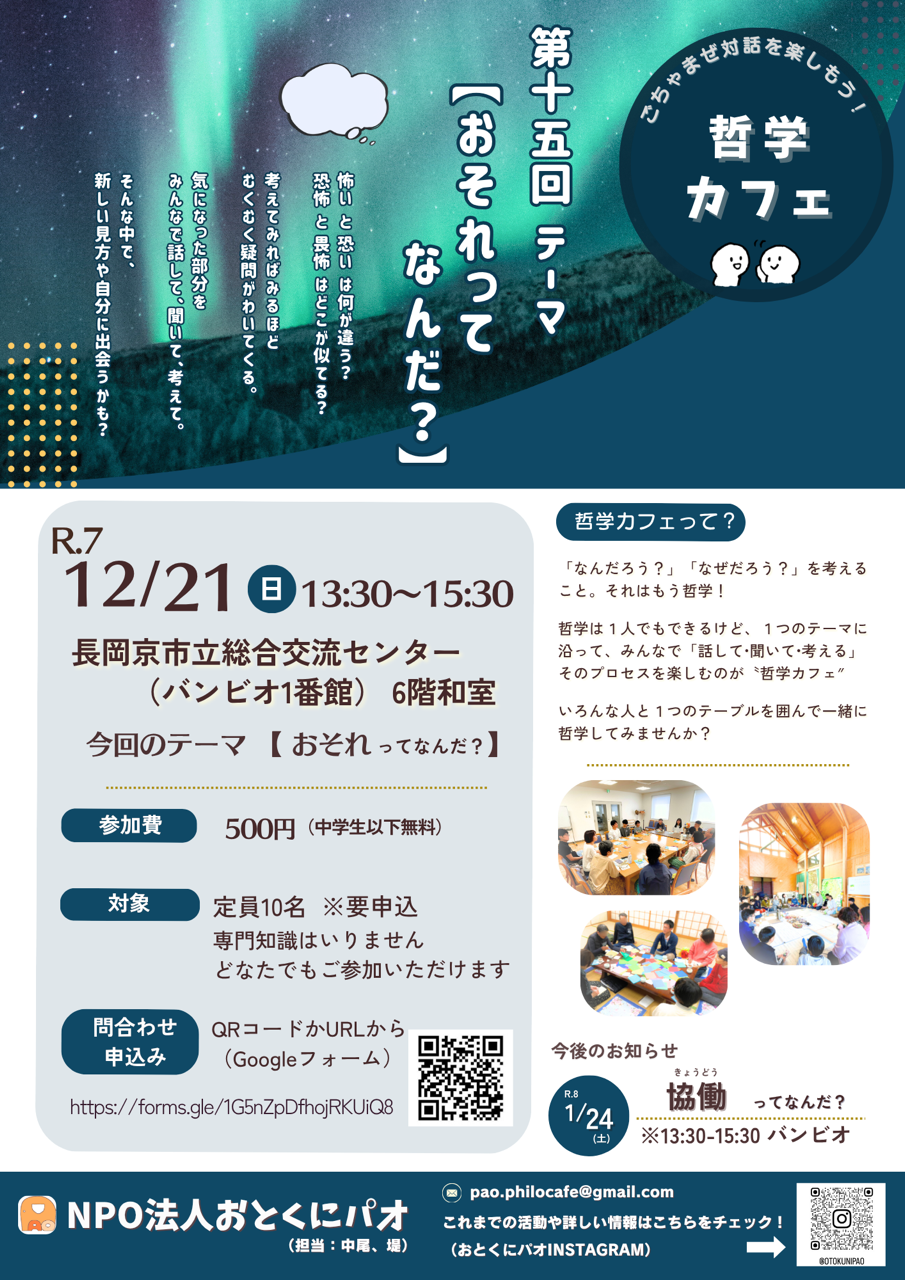 【イベント】12/21(日) 哲学カフェ 第十五回テーマ「おそれってなんだ?」 NPO法人 おとくにパオ