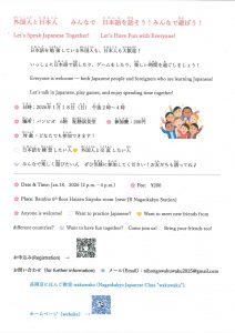 【イベント】1/18(日) 外国人と日本人 みんなで日本語を話そう!みんなで遊ぼう!