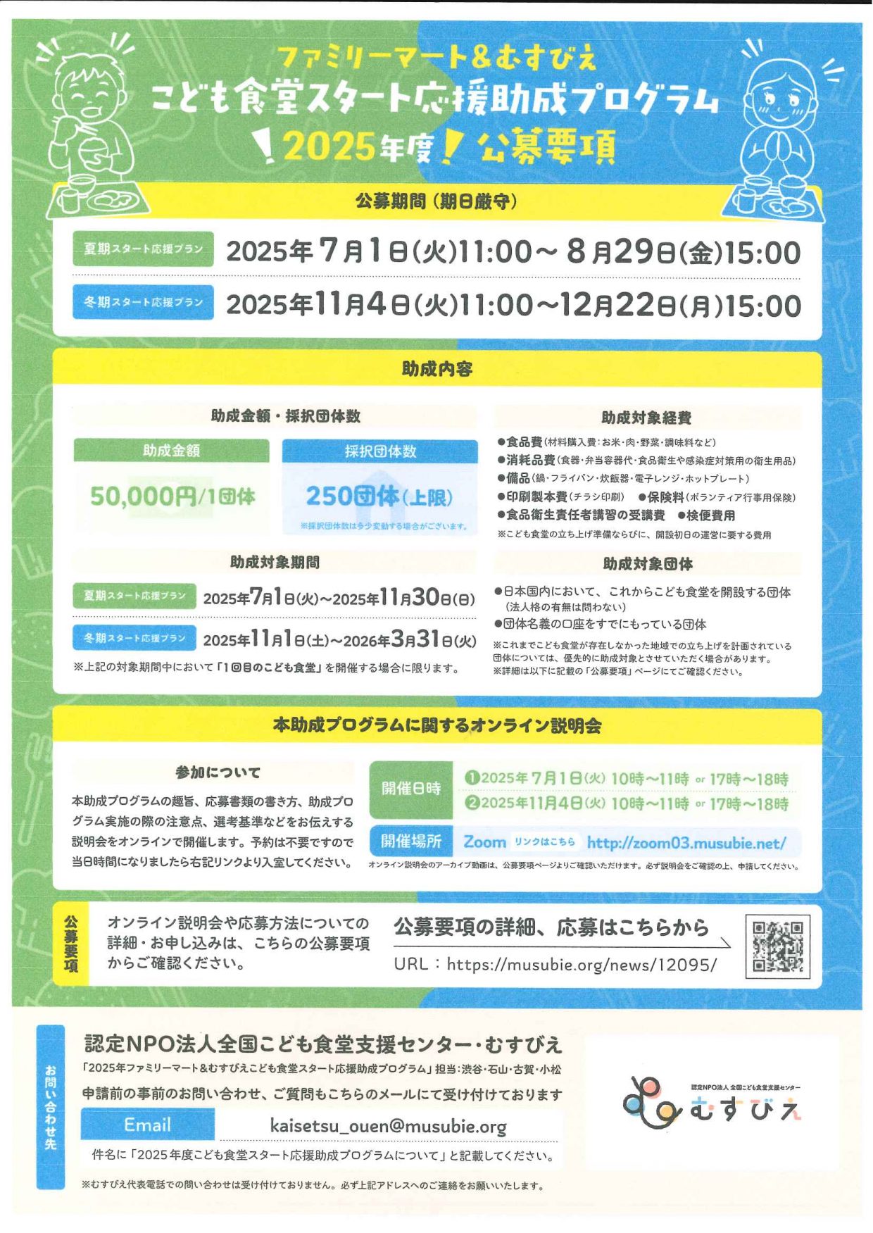 「2025年ファミリーマート&むすびえこども食堂スタート応援助成プログラム」
