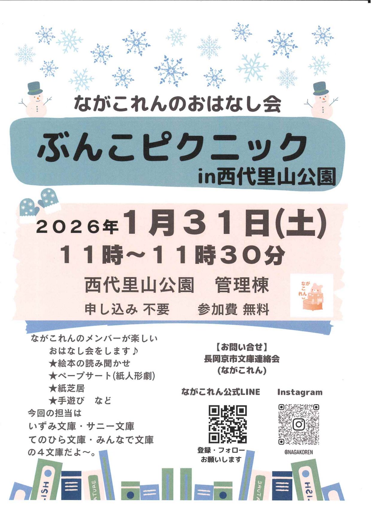 【イベント】1/31(土) ぶんこピクニックin 西代里山公園 長岡京市文庫連絡会