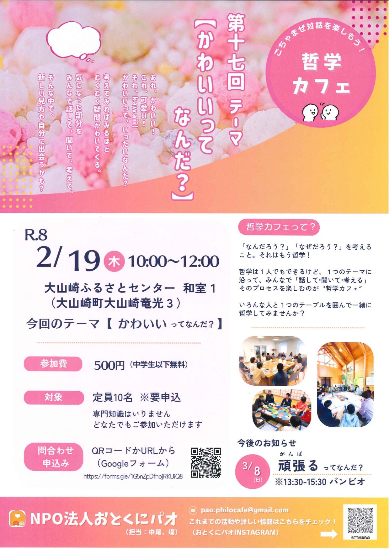 【イベント】2/19(木) 哲学カフェ 第十七回テーマ「かわいいってなんだ?」 NPO法人 おとくにパオ