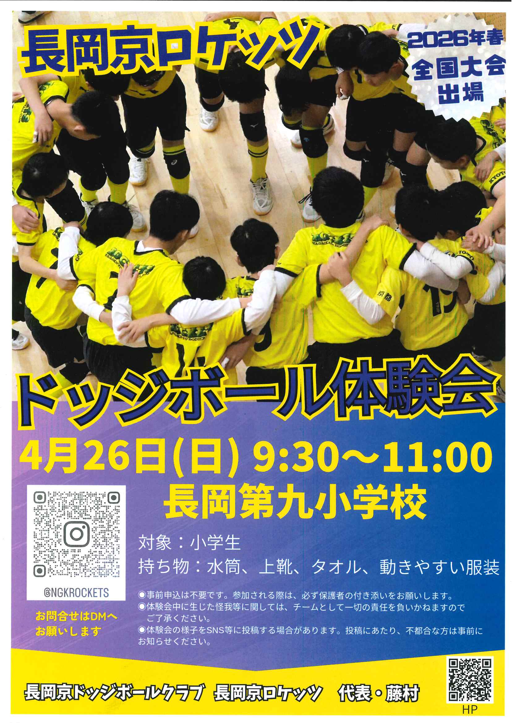 【体験会】4/26(日) 「ドッジボール体験会」 長岡京ロケッツ