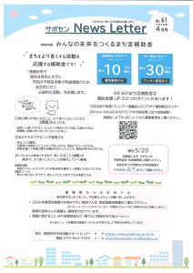 2026-04-03 / 最終更新日時 : 2026-04-03 nagaokasaposen 01.サポセンからのお知らせ 【お知らせ】サポセン News Letter 4月号 サポセンからのNewsをお届けします! News Letter 4月号が完成しました。 ◇「みんなの未来をつくる まち活補助金」の大特集です♪ 考え方の手順や補助金UPのポイントなどもご紹介してます。 ◇2026年度団体の団体登録にご協力ありがとうございます。 まだ登録がお済でない団体さんは、お早めにお願いします。 ◇まち活ルームは、4月14日(火)からはじまります。 登録に関すること、まち活補助金のご相談など待ちしています。 ※詳細などは、お気軽に事務局へお問合せください。