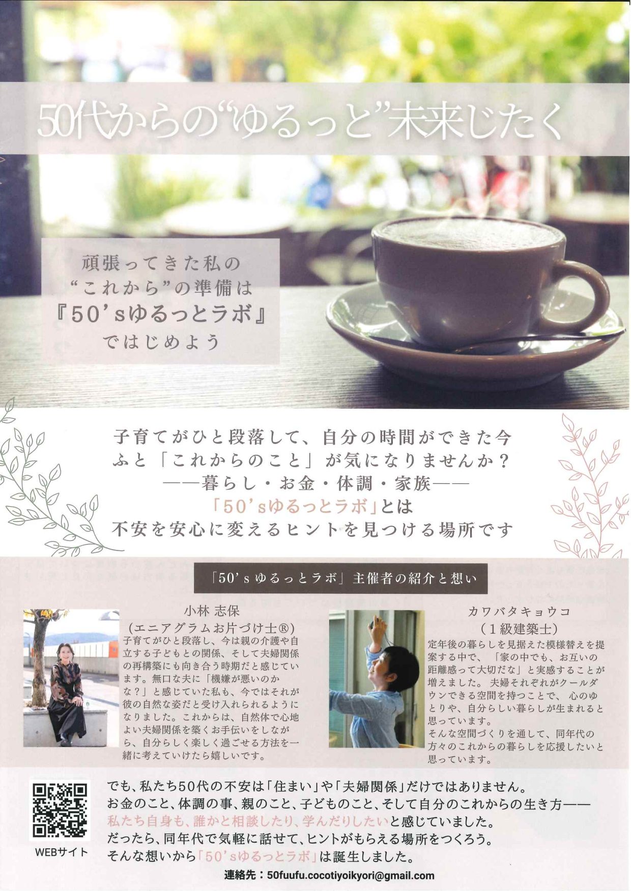 【主催】50❜sゆるっとラボ ✉ 50fuufu.cocotiyoikyori@gmail.com