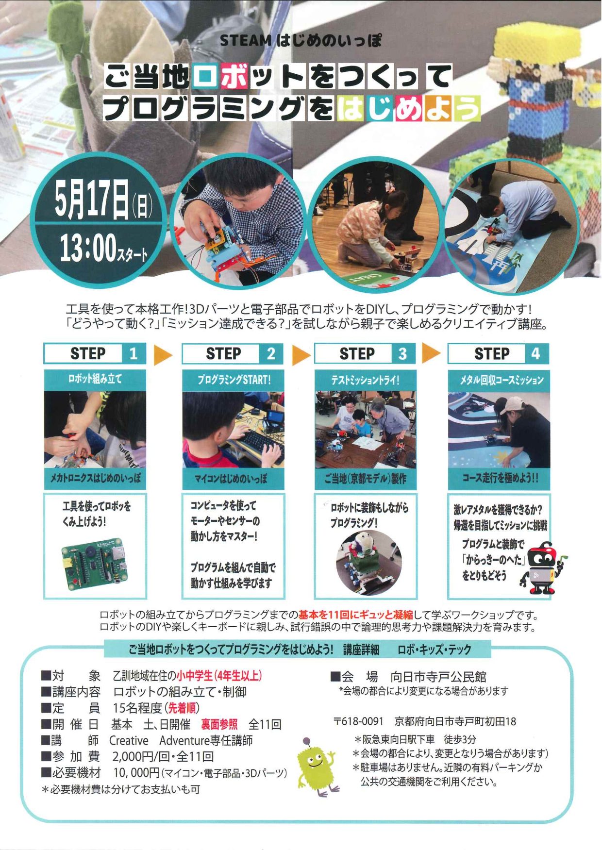 【イベント】5/17 「ご当地ロボットをつくってプログラミングをはじめよう」NPO法人Cleative Adventure